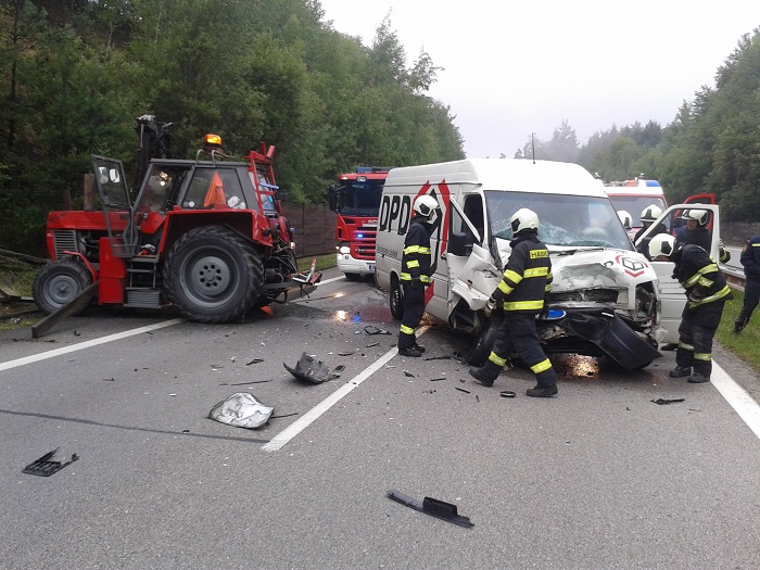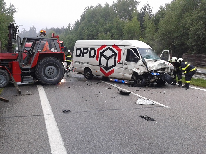 Srážka dodávky a traktoru sekajícího trávu u Hůr