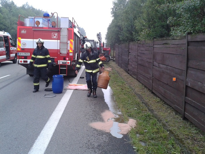 Po srážce dodávky s traktorem zalil hlavní tah na Lišov olej