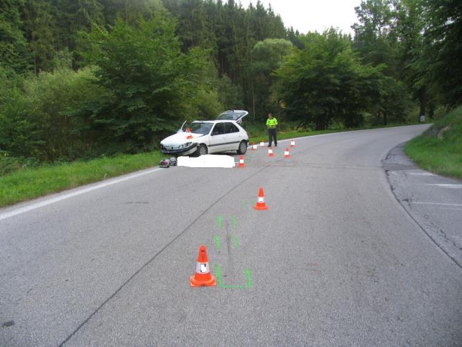 Smrtelná srážka skútru s Peugeotem 306 u Českého Krumlova