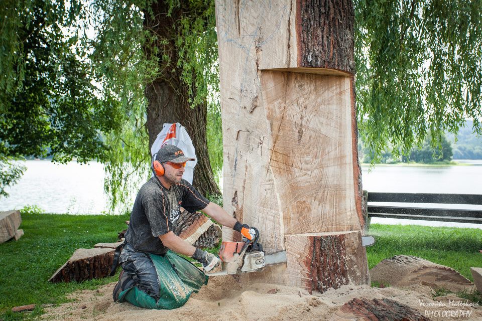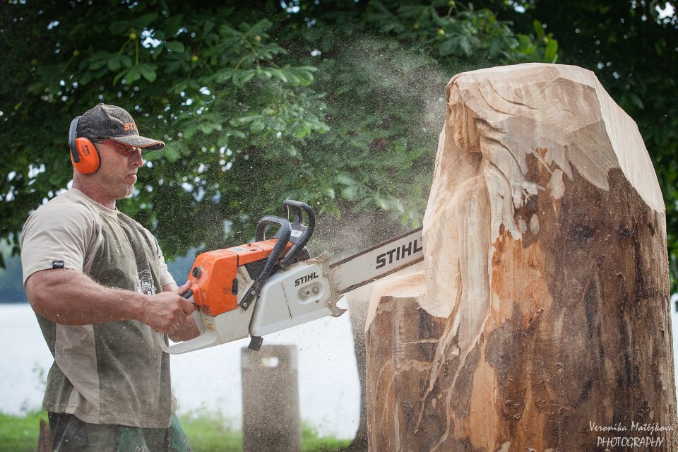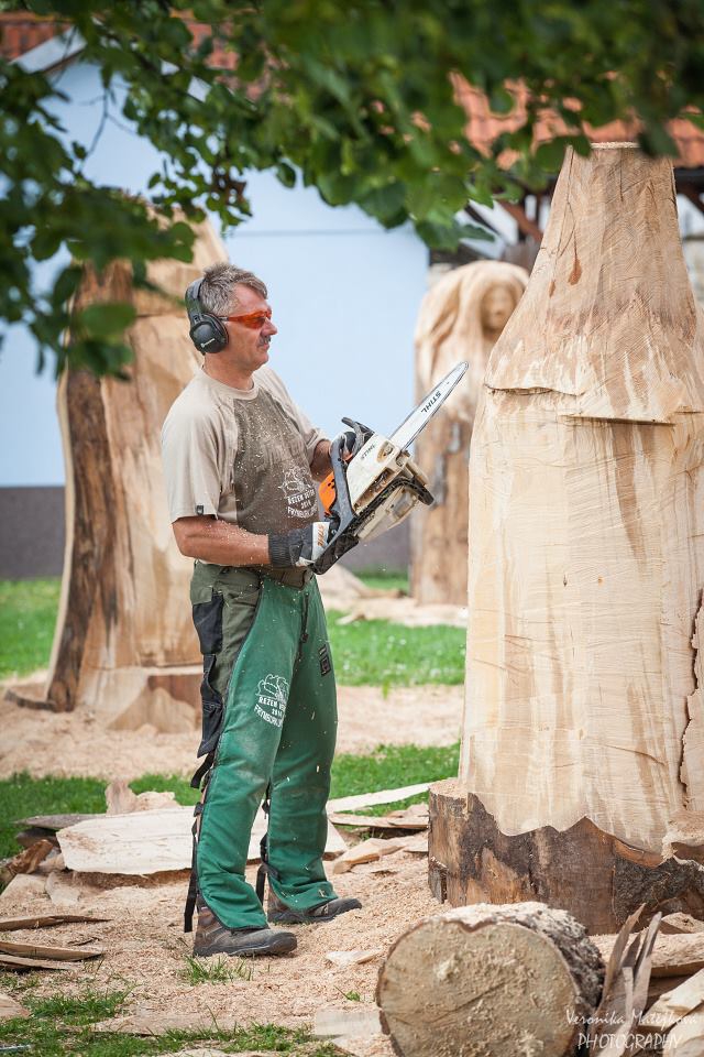 Při dřevosochařské show vyrábí pohádkové bytosti