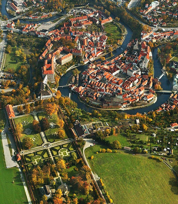 Otáčivé hlediště v Českém Krumlově (na snímku vlevo dole)