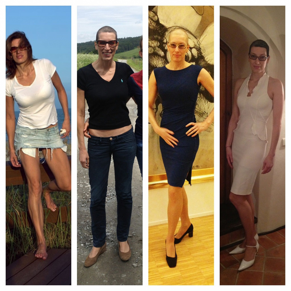 Paní Petra před, v průběhu a po onemocnění rakovinou prsu. Snímky byly pořízeny v rozmezí osmi měsíců