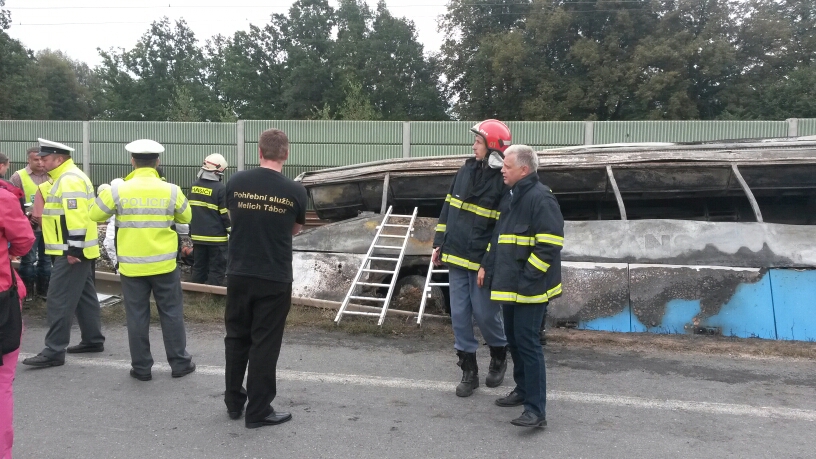 Havarovaný linkový autobus u Plané nad Lužnicí