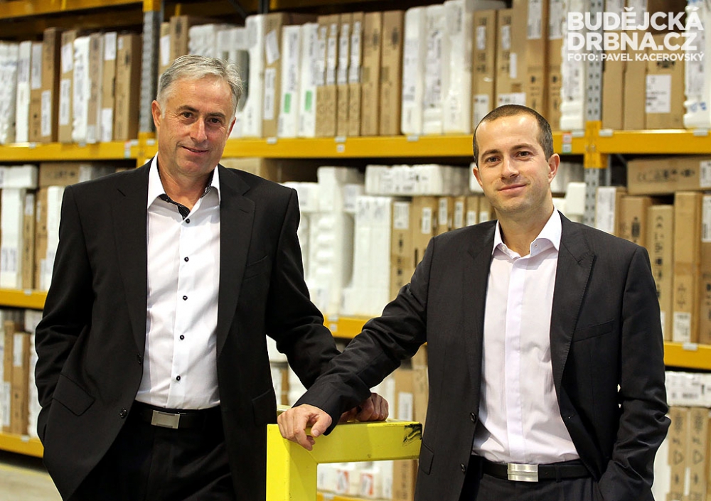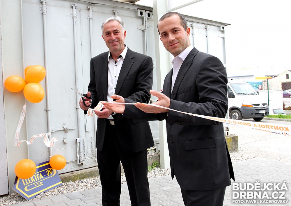 Otec se synem Václavovi slavnostně otevírají centrální sklad na Rudolfovské třídě