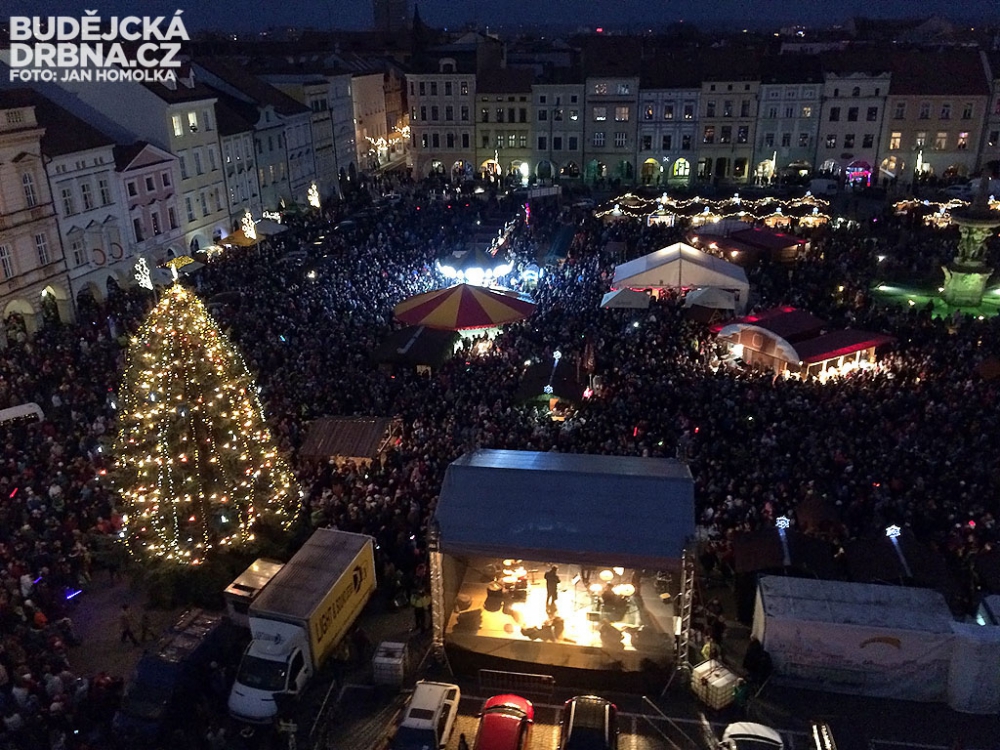 Rozsvícení vánočního stromu sledovaly na náměstí Přemysla Otakara II. tisíce lidí