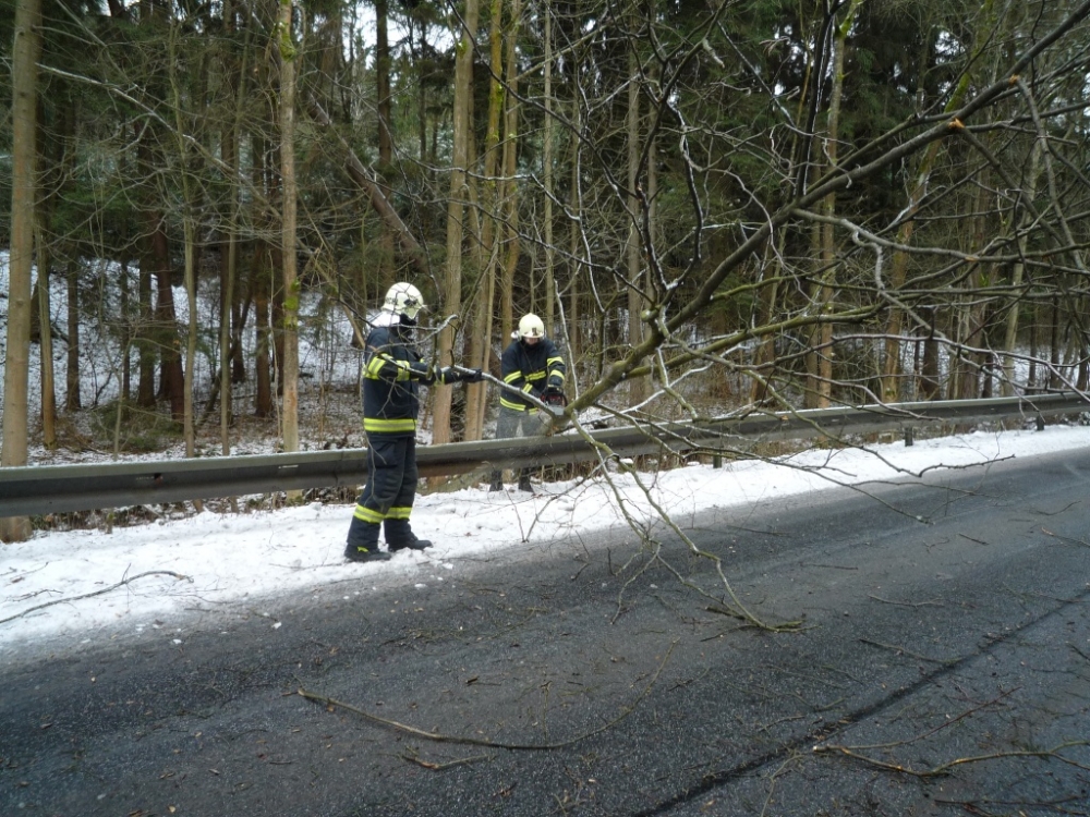 Některé silnice pokryla ledovka, u Zbytin narazil vlak do stromu
