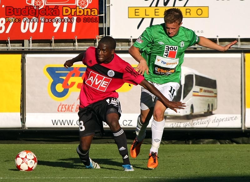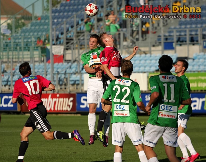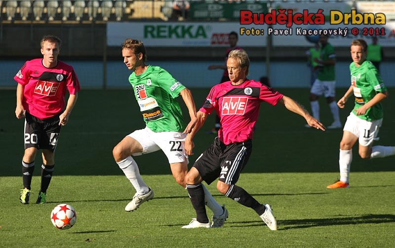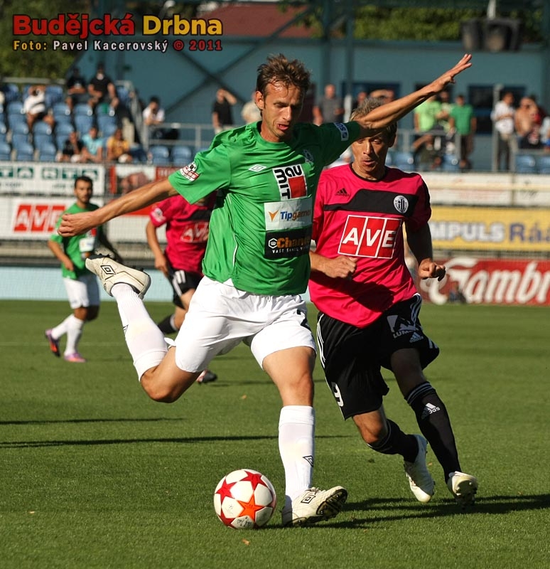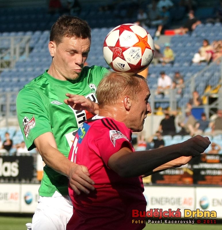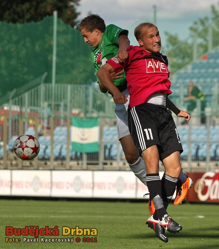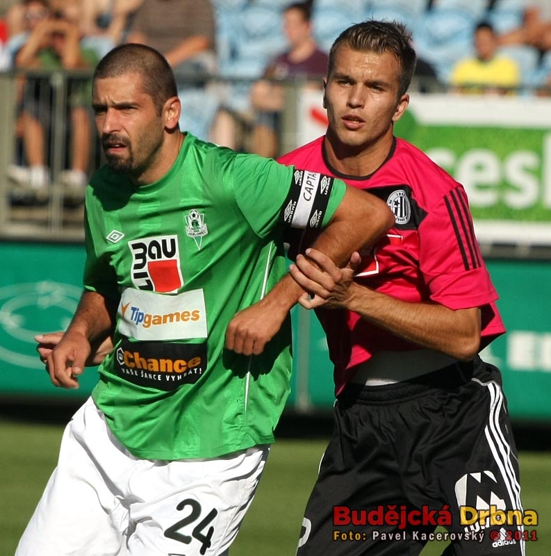 Domácí středopolař Rudolf Otepka v souboji s Markem Jarolímem