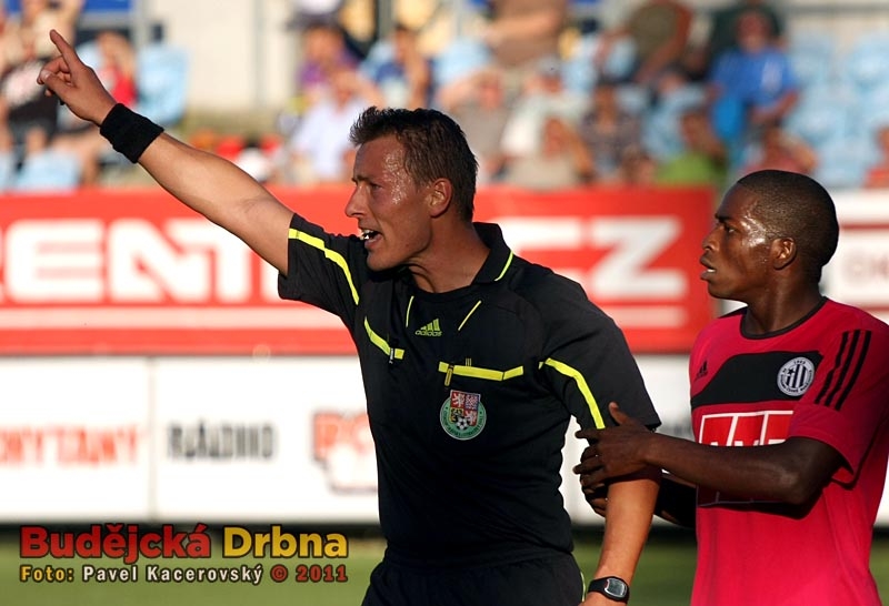 Hudson se u hlavního arbitra Karla Hrubeše dožaduje odpískání penalty