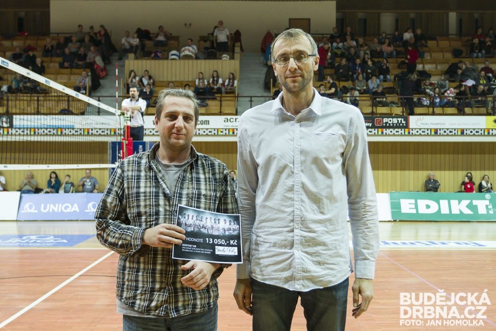 Šek předal manažer Jihostroje Stanislav Pochop zástupci sdružení Kontakt bB Janu Janouškovi