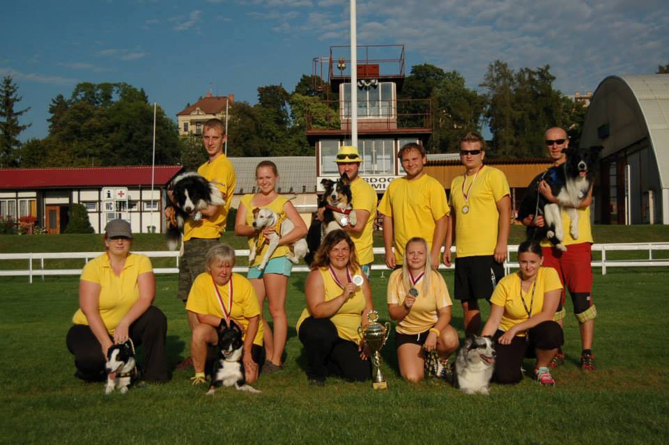 Budějcký kynologický klub OSA Alea na mistrovství České republiky 2014. Sabina Koubková dole uprostřed