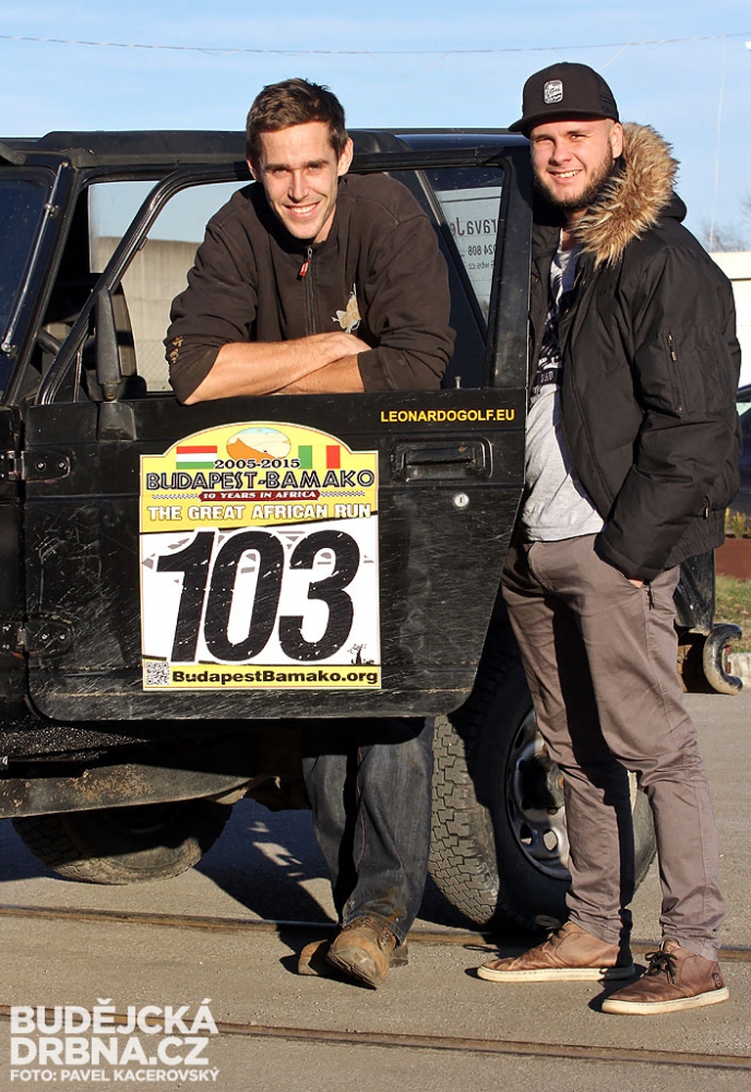 Tomáš Chocholáček a Tomáš Gábriš (v popředí) před odjezdem na Budapešť-Bamako