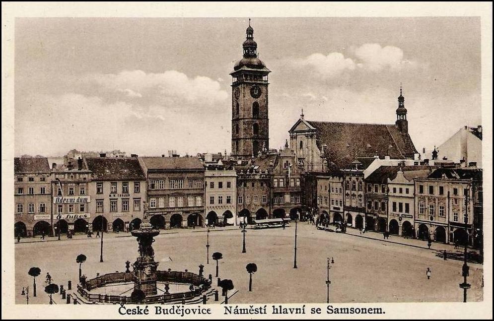 Část severní a východní strany českobudějovického náměstí ve 20. letech 20. století