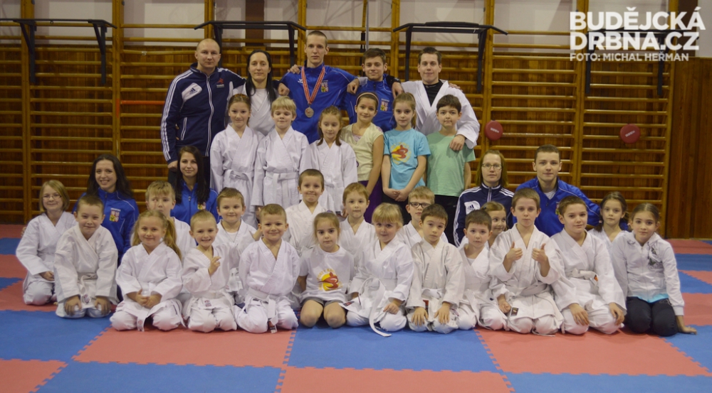 Úspěšní karatisté s členy náboru do budějckého oddílu