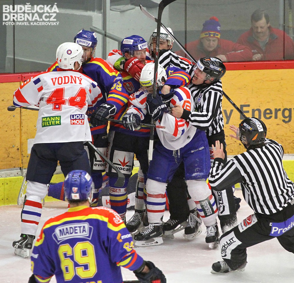 První semifinálový zápas Motoru s Třebíčí byl vyhecovaný. Rozhodčí udělili 22 menších trestů