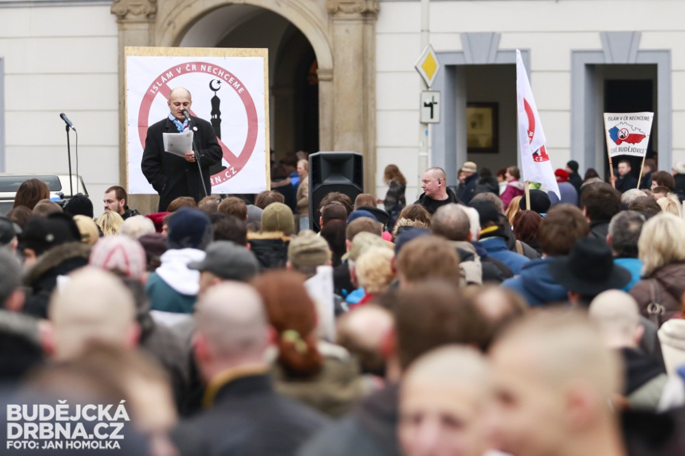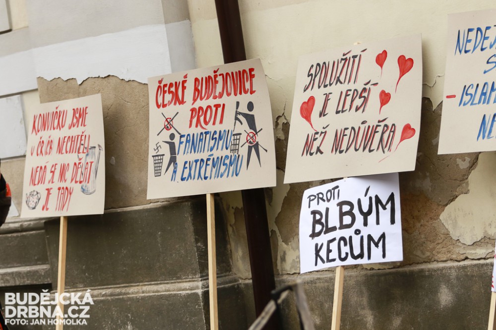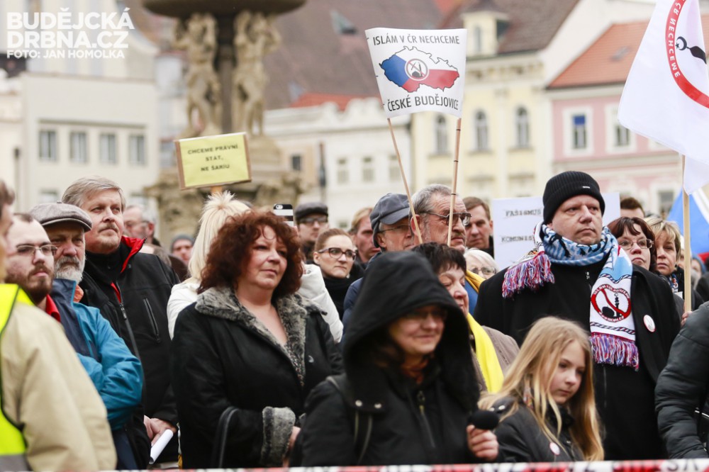 Proti islámu v Budějcích protestovalo pár stovek lidí