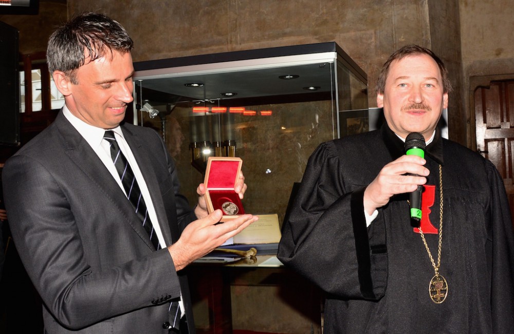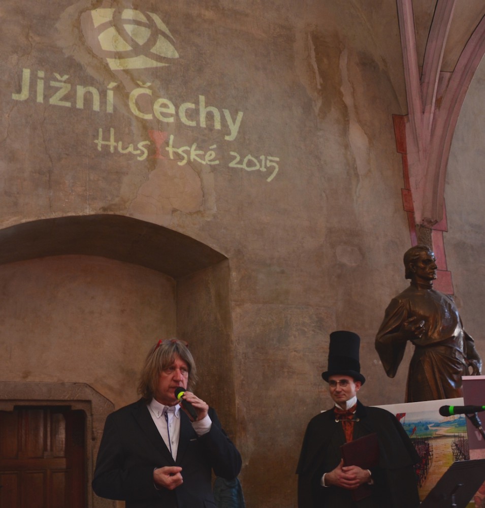 Během prezentace dostal hejtman Jiří Zimola od patriarchy Církve československé husitské Tomáše Butty pamětní medaili