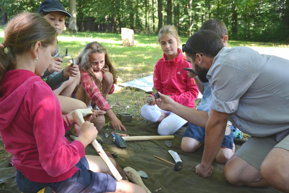 Velký zájem měly děti o muzejní kufříky s artefakty z doby kamenné