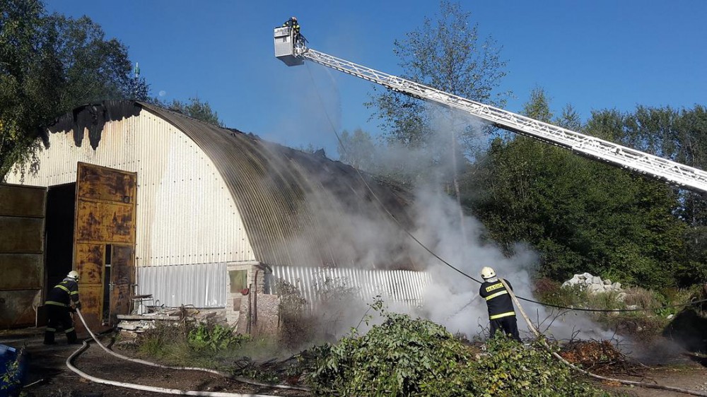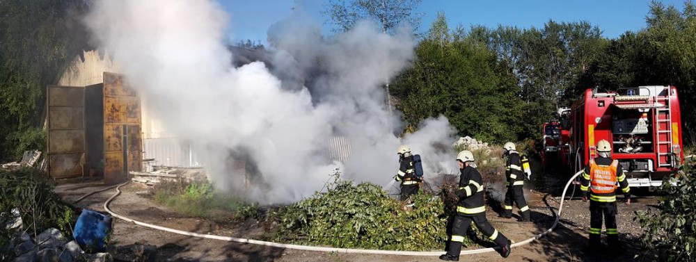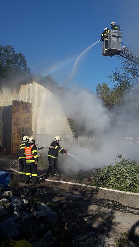Ve Větřní dopoledne hořela hala s odpadem, hasiči dostali požár do patnácti minut pod kontrolu