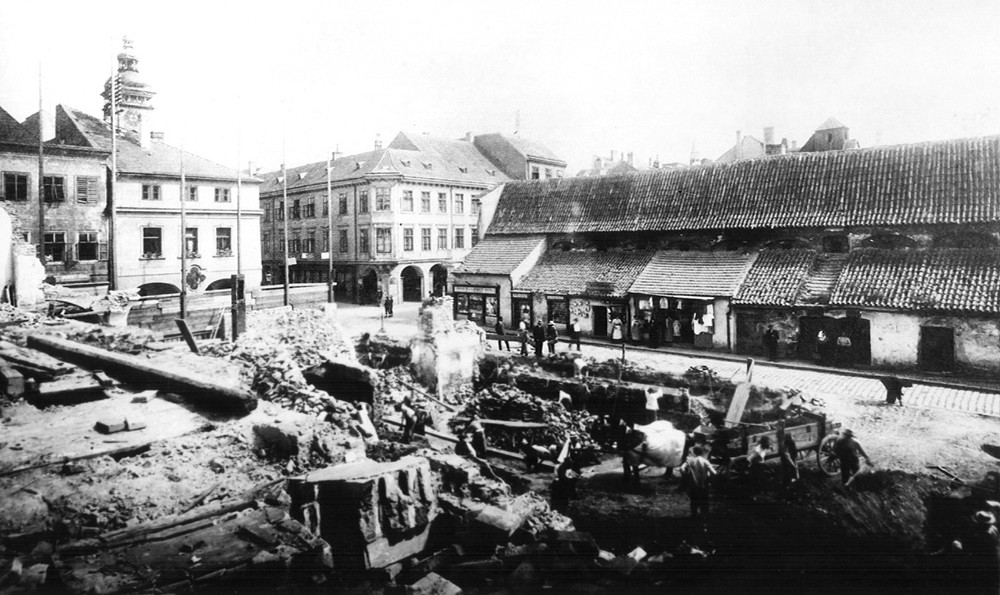 Masné krámy byly na náměstí postaveny brzo po založení města. Karel IV. je ale nechal odstranit