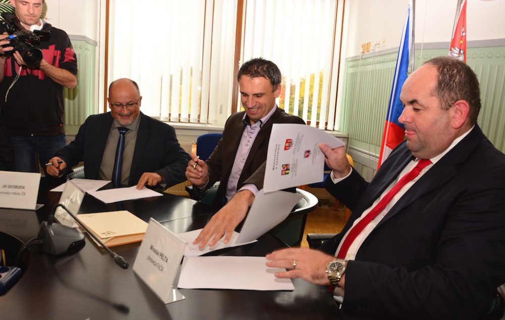 Jiří Svoboda, Jiří Zimola a Miroslav Pelta při podpisu memoranda