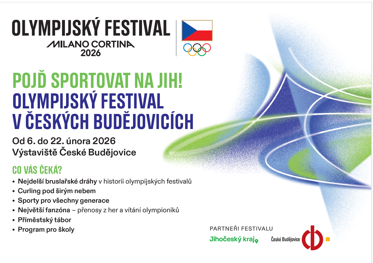 Jihočeský kraj je hrdým partnerem Olympijského festivalu 2026, který se uskuteční od 6. do 22. února 2026 na Výstavišti České Budějovice. Organizátoři nyní hledají dobrovolníky, kteří chtějí být součástí jedinečné sportovní události spojené se zimními olympijskými hrami v Miláně a Cortině d’Ampezzo.