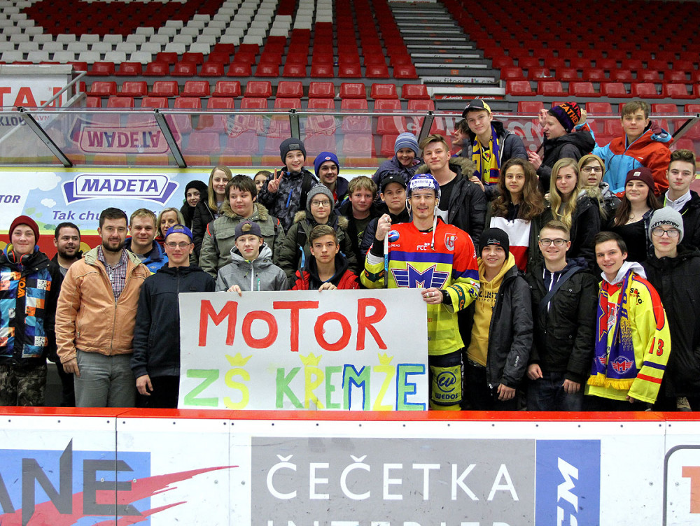 ČEZ Motoru dorazili fandit žáci Základní školy Křemže. Po zápase je přišel na domácí střídačku pozdravit Žiga Pavlin