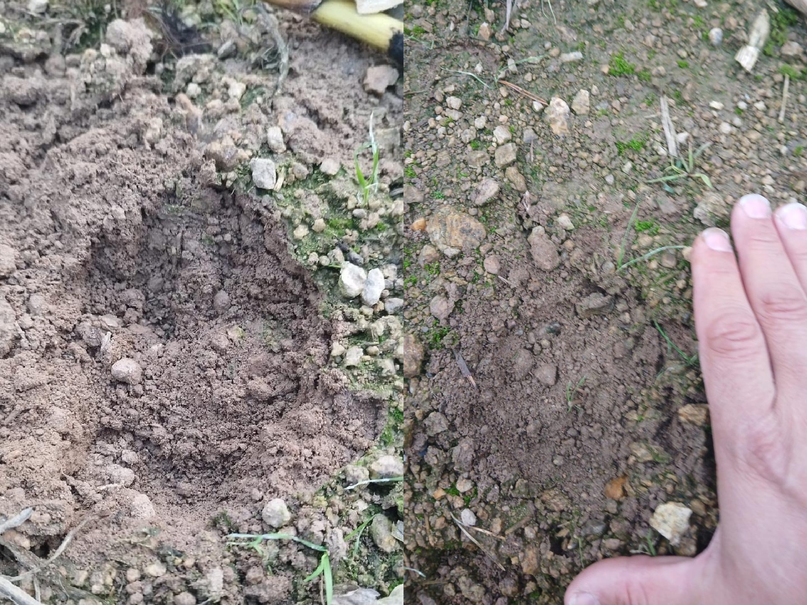 Stopy šelmy, které se myslivcům a policii podařilo najít. Policie a myslivci proto přijali opatření ke zmapování možného pohybu zvířete a k potvrzení jeho výskytu. Pokud se přítomnost šelmy potvrdí, budou podniknuty kroky k jejímu odchycení.