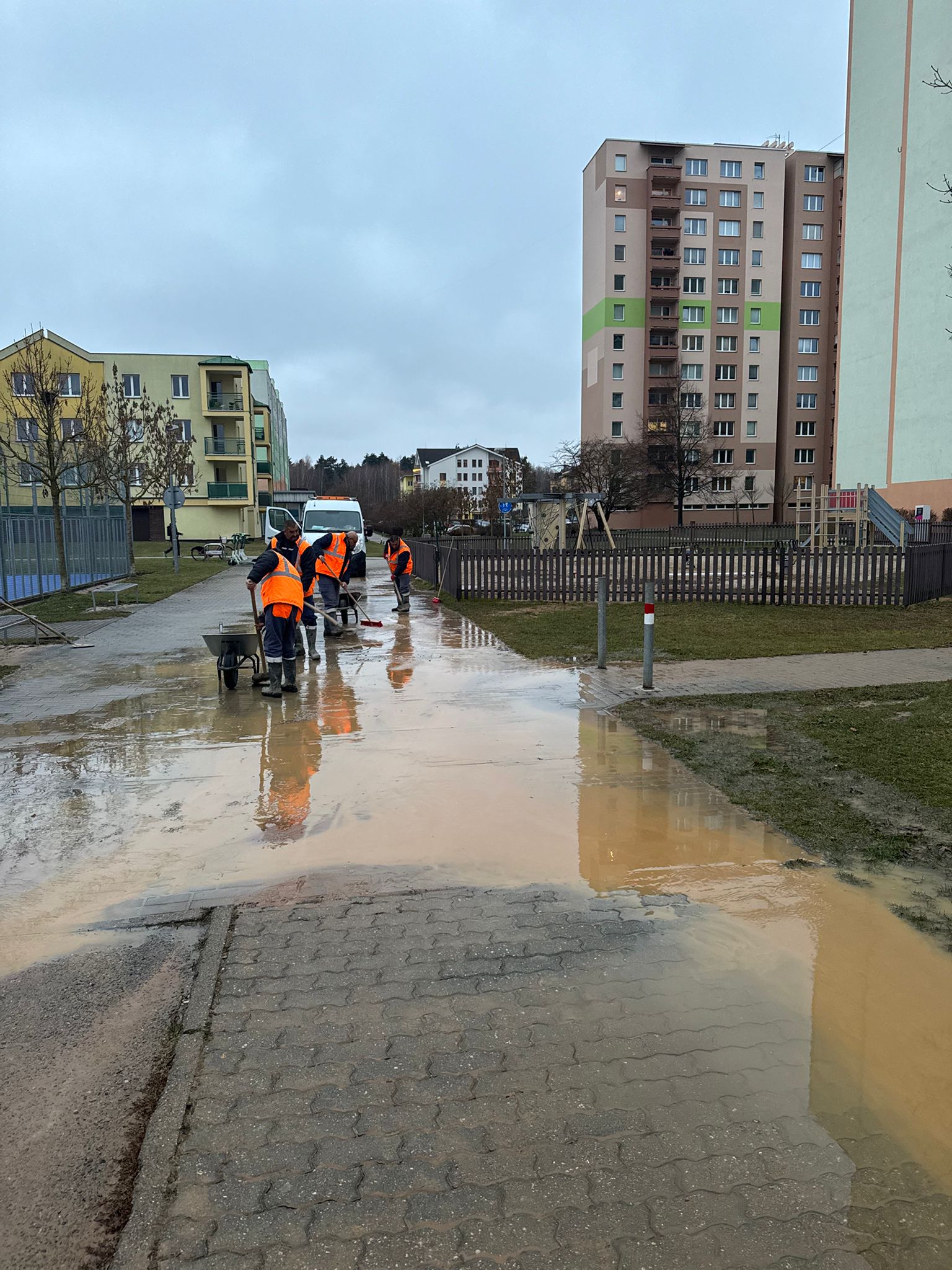 „Vzhledem k místu poruchy je třeba před zahájením samotné opravy hřiště uzavřít. Ihned poté začnou výkopové práce a samotná oprava poškozené části potrubí. V důsledku poruchy momentálně voda neteče obyvatelům panelového domu J. Bendy č. 24, na místě je jim k dispozici cisterna s pitnou vodou,“ uvedlo město České Budějovice.