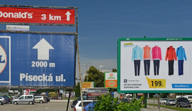 Pokud projedete naším městem od severu k jihu, to jest po příjezdu od Písku až na výpadovku na Český Krumlov (od značky ke značce), potkáte „pouze“ devět světelných křižovatek, zato billboardů ve velikosti „euroformátu“ 5,6 x 2,1 metru a větších napočítáte 129.