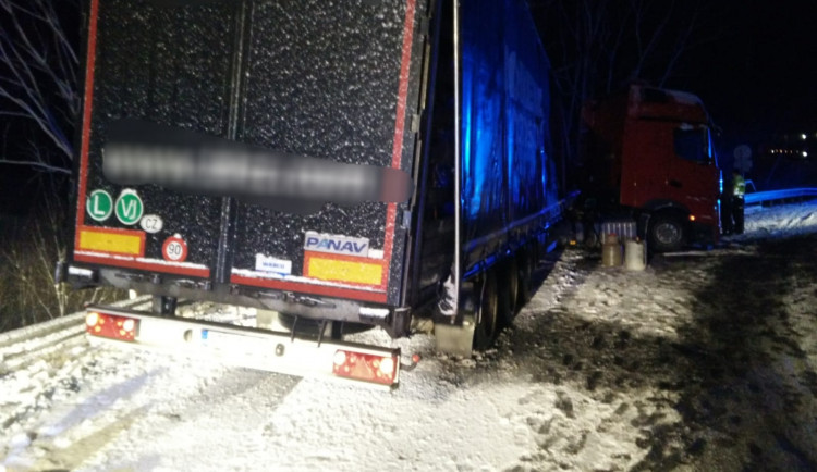 Nákladní automobil havaroval u Vimperku po 17 hodině odpoledne. Podle policejního mluvčího Milna Bajcury se měl na silnici vzpříčit. „Kamion si prorazil nádrž, vytéká tam nafta, zasahují hasiči i záchranáři. Osobní auta projedou horko těžko, nákladní auta v žádném případě," řekl Bajcura. Silnice bude pro nákladní auta zavřená pravděpodobně celou noc.