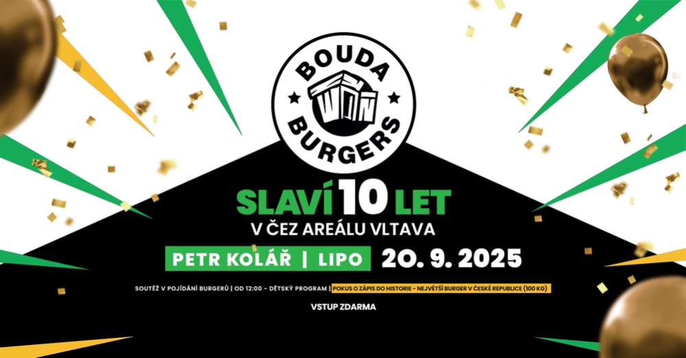 České Budějovice se mohou těšit na oslavu, jaká tu ještě nebyla. Bouda Burgers, legenda budějcké gastroscény, slaví 10. narozeniny – a kulaté výročí pojme opravdu ve velkém. V sobotu 20. září 2025 se ČEZ Areál Vltava od 12:00 do 22:00 promění v místo, kde se spojí skvělé jídlo, živá hudba a zábava pro všechny generace. A co je nejlepší? Vstup je zdarma.