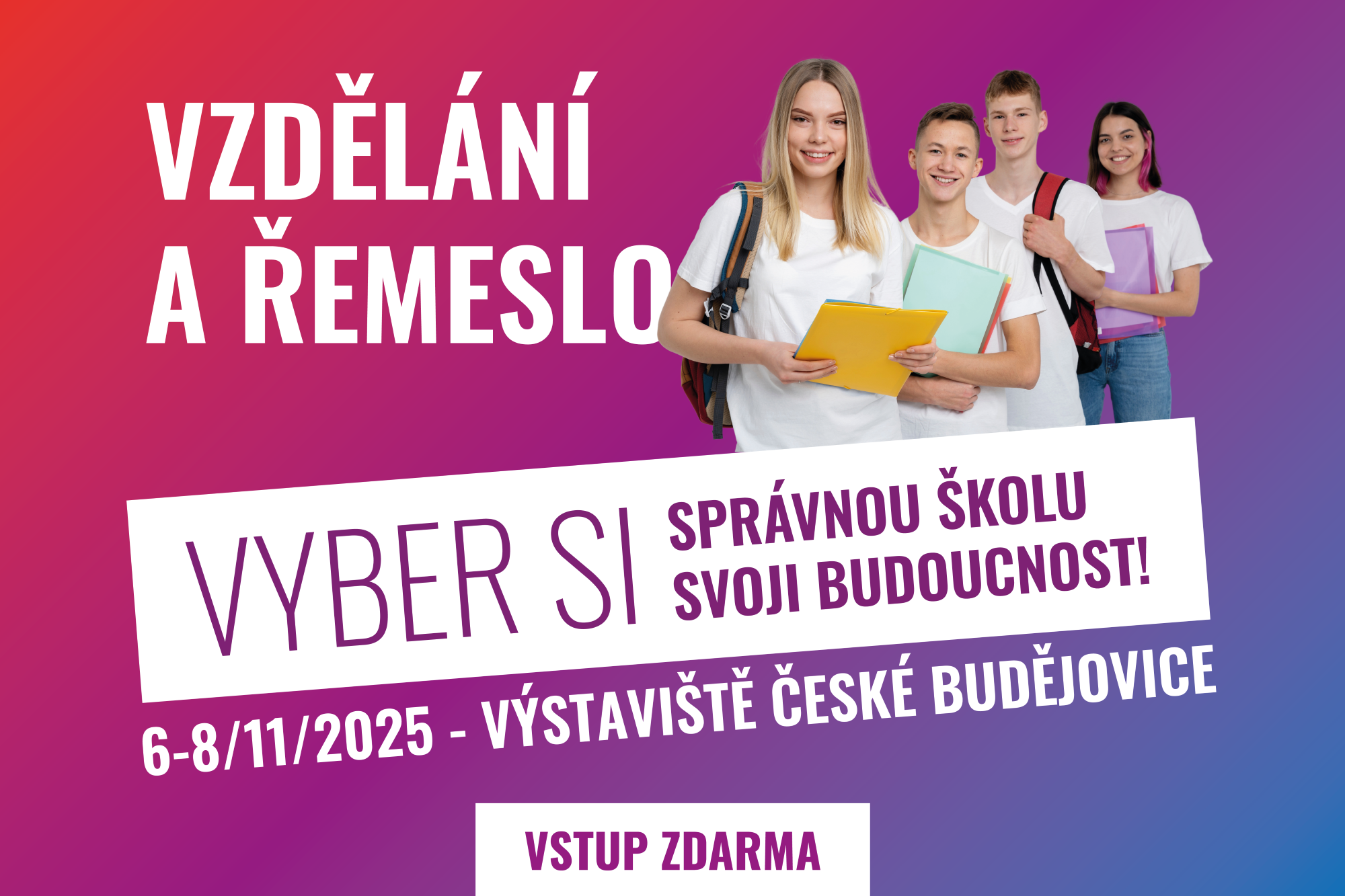 Tři dny plné soutěží, praktických ukázek nejen řemesel, ale i moderní techniky. Nejen to nabídne tradiční výstava Vzdělání a řemeslo, kterou chystá Výstaviště České Budějovice od 6. do 8. listopadu. Výstava už tři desetiletí pomáhá mladým lidem s výběrem budoucí profese. Přijďte se inspirovat, zeptat se na vše, co vás zajímá, a najít svou cestu ke vzdělání. Vstup na akci je zdarma.