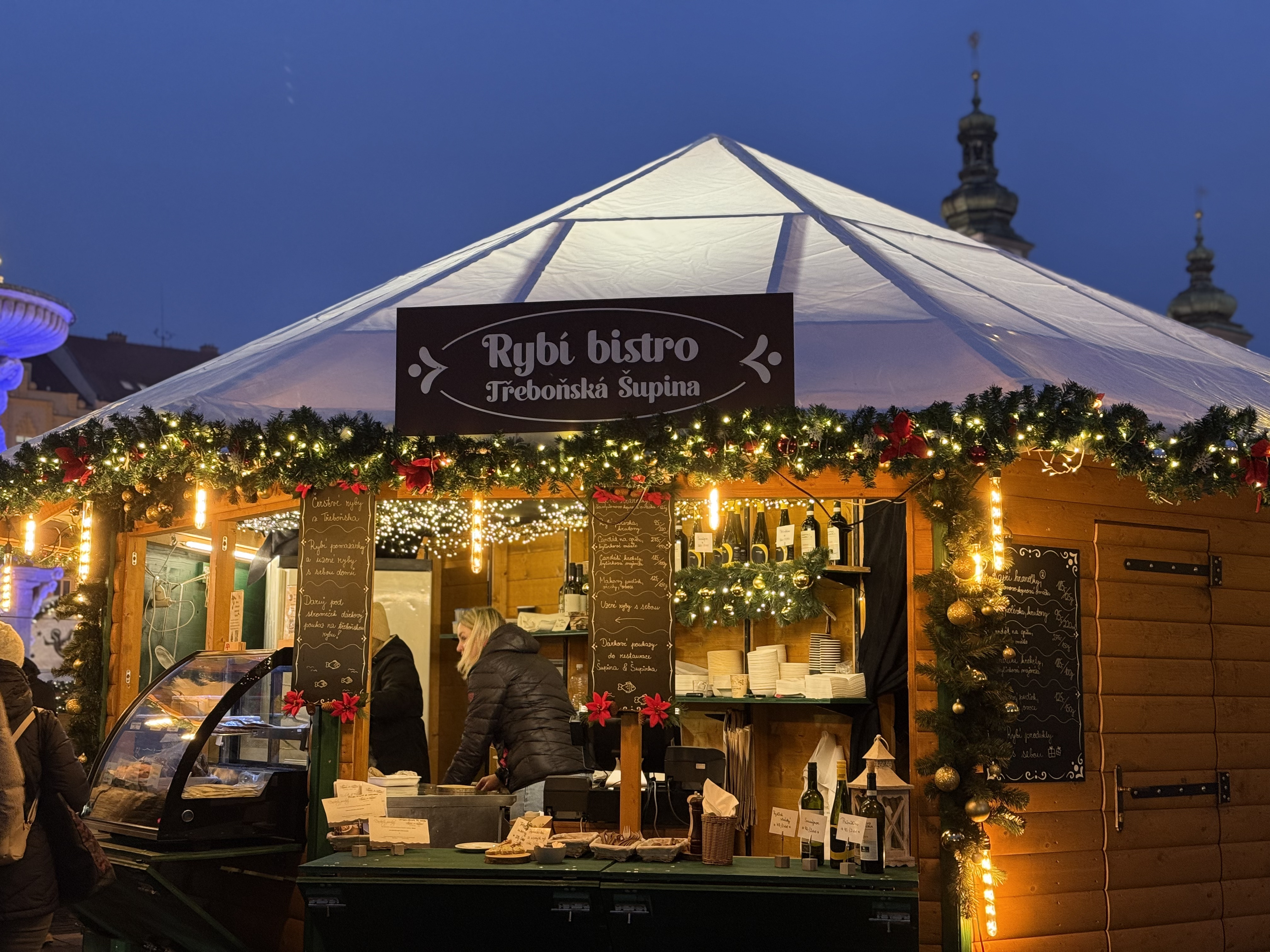 K českým svátkům neodmyslitelně patří ryby. A na trzích jednoznačně dominuje třeboňské bistro Šupina a Šupinka. Nabízí kapří hranolky, rybí polévku, uzené ryby, candátí burger s chilli majonézou nebo krokety z candáta s bylinkovou majonézou.