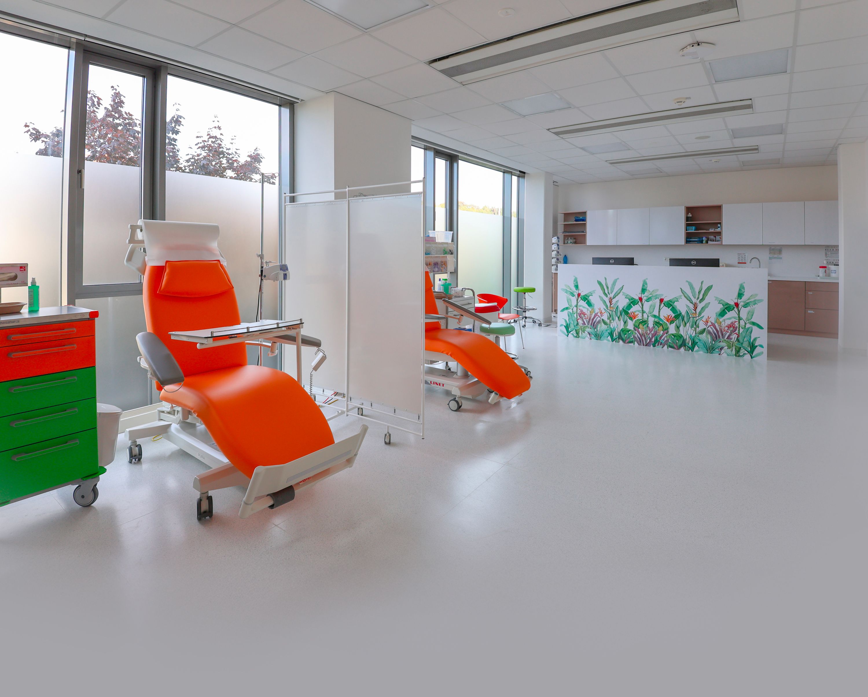 Chemostacionáře.„Naším cílem je nabídnout ženám maximální komfort v době, kdy ho nejvíce potřebují. Proto nově poskytujeme komplexní léčbu na jednom místě, od prvního kontaktu, přes chemoterapii až po protonové ozáření. Bez zbytečných přesunů, bez prodlev, bez stresu,“ říká vedoucí lékařka pro léčbu karcinomu prsu doktorka Andrea Pásztorová.
