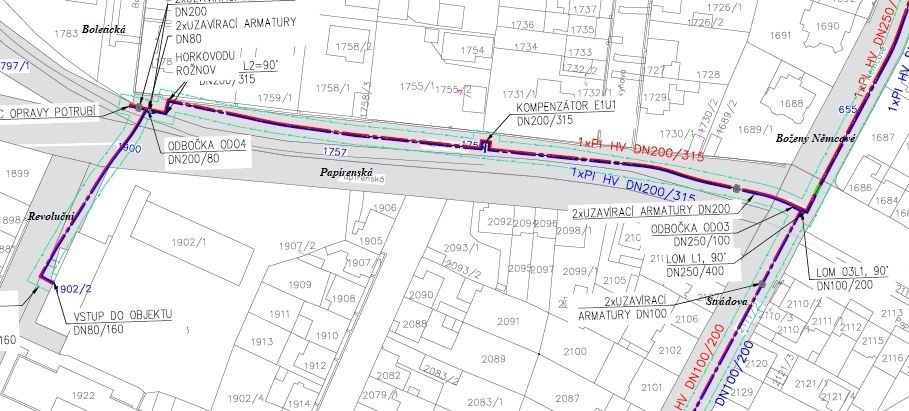 Ta tak pokračuje v modernizaci své distribuční sítě v části Rožnov, kde úvodní etapa proběhla loni v létě. To byl z areálu nemocnice vyveden nový horkovod do ulice Boženy Němcové, v níž pak v úseku dlouhém 118 metrů došlo k nahrazení zastaralého parovodu. Nyní práce navážou v Papírenské.
