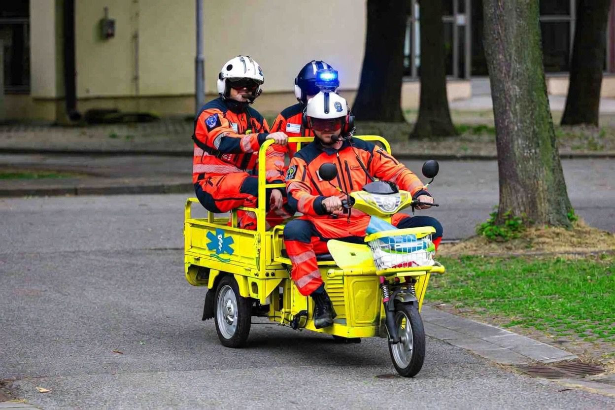 Velkou dávku kreativity ukázali i jihočeští záchranáři. Ti oznámili spuštění pilotního provozu elektrických tříkolek pro leteckou záchrannou službu. Nová vozidla měla sloužit v centrech měst, kde má vrtulník omezené možnosti.