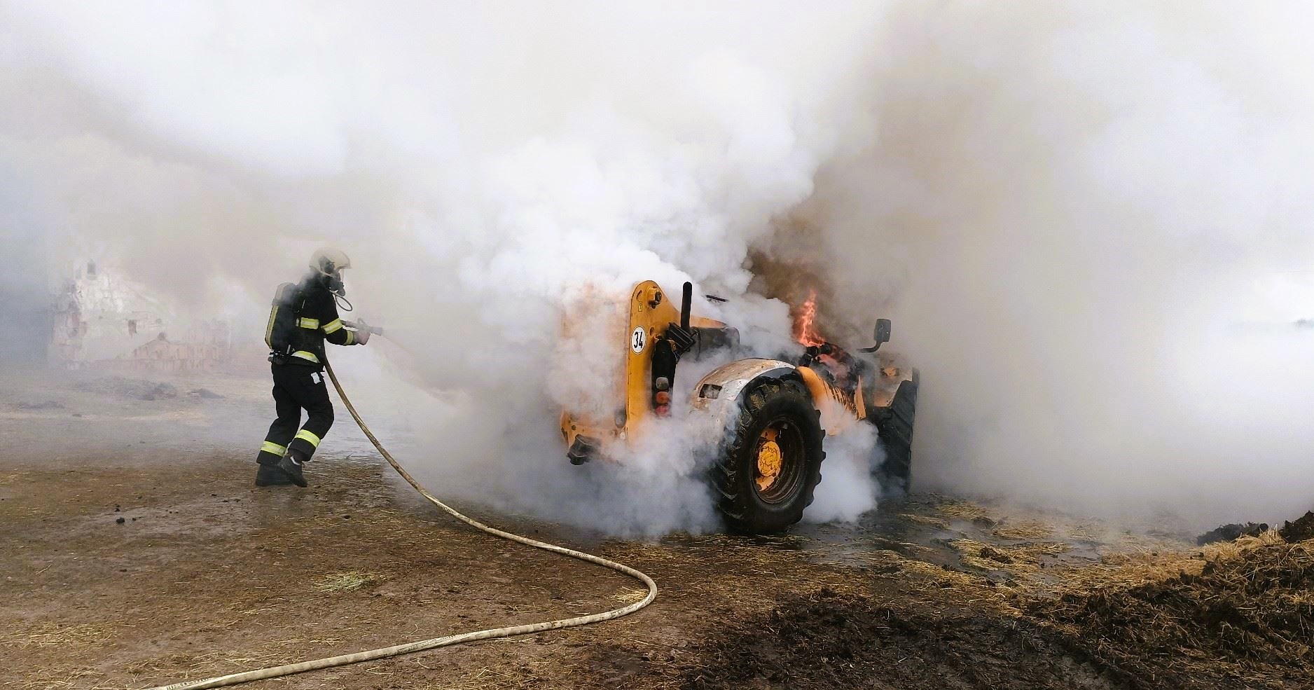 Ve Vodňanech dnes dopoledne hořel nakladač. Požár motorové části způsobil statisícovou škodu, hasiči jej uhasili během necelé čtvrthodiny.