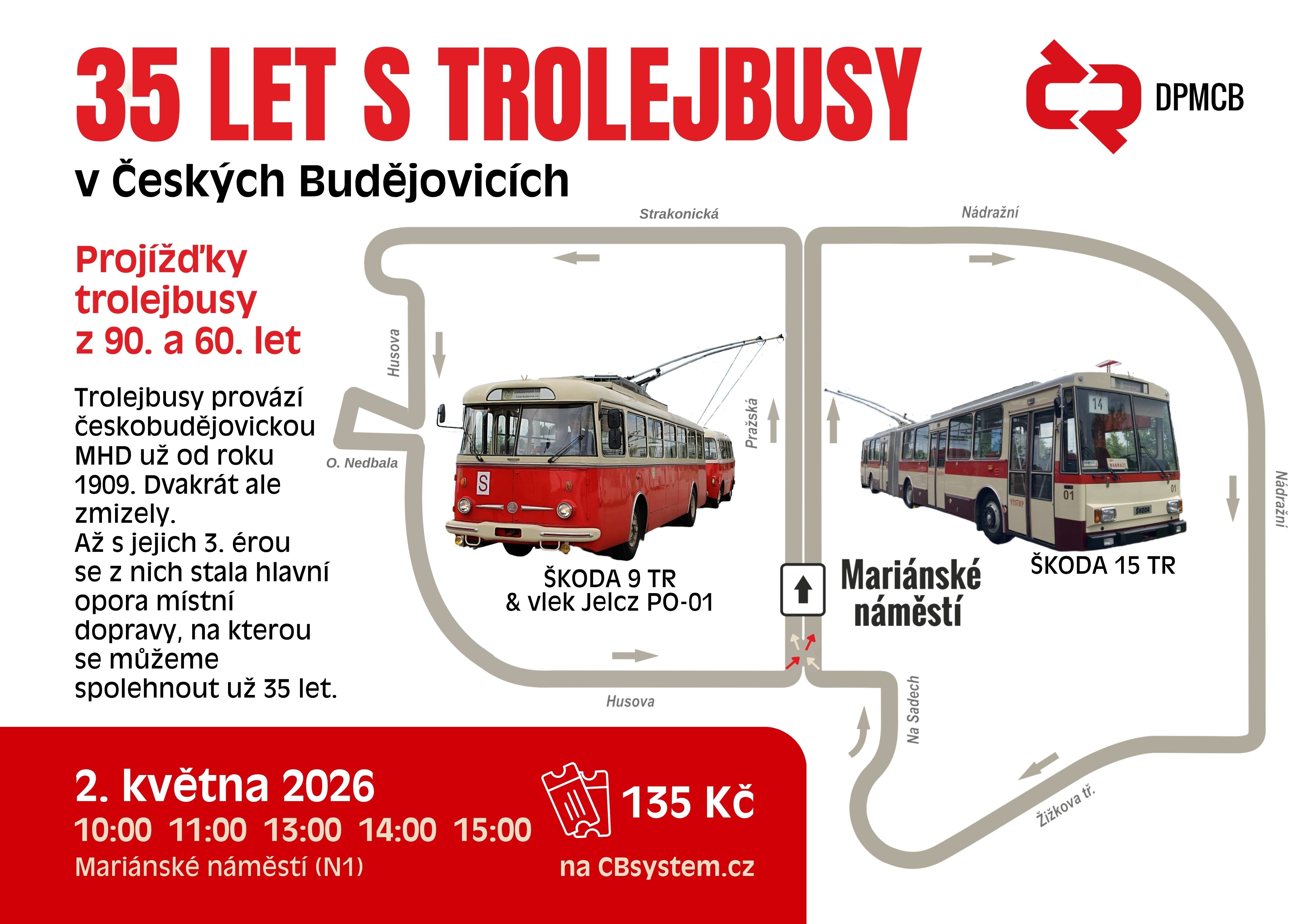 Na 35. výročí novodobé éry trolejbusové dopravy v Českých Budějovicích přichystal Dopravní podnik akci pro veřejnost. Na trase pod trolejovým vedením vyjedou historická vozidla Škoda 9 TR a Škoda 15 TR, které návštěvníkům nabídnou jedinečné svezení ve stylu dvou různých období českobudějovické MHD.