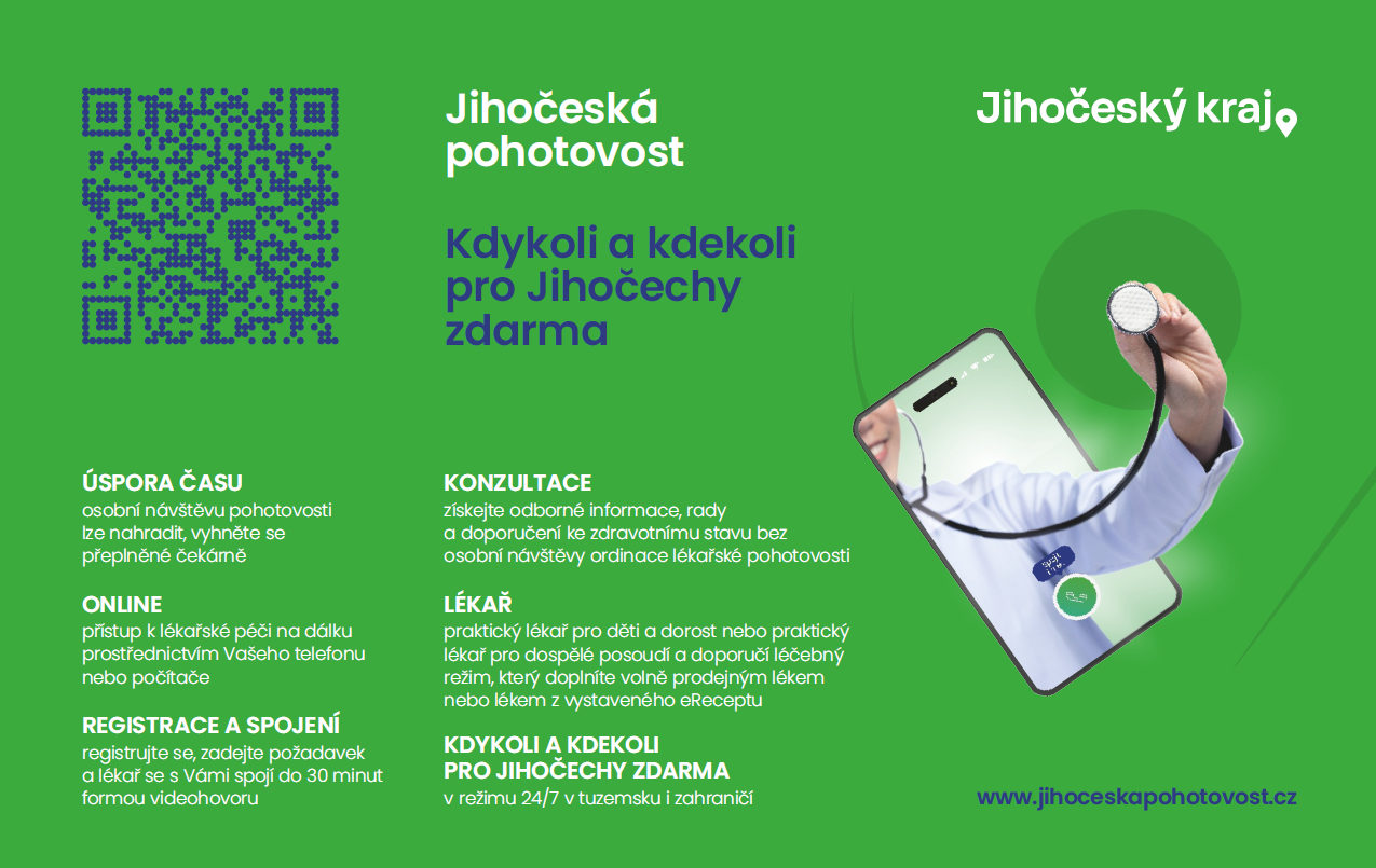 Online Jihočeská pohotovost nabízí obyvatelům kraje okamžitou konzultaci s lékařem prostřednictvím videohovoru nebo chatu – 24 hodin denně, 7 dní v týdnu, odkudkoli a zdarma. Tato moderní forma telemedicíny si rychle získala pevné místo v péči o Jihočechy a její obliba dál roste. Registrováno je už bezmála 41 tisíc uživatelů.